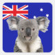 Pegatina Cuadrada Koala con fondo de bandera australiana