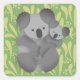 Koala y joey sobre un fondo de eucalipto dejan pegatina.