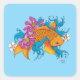 Pegatina Cuadrada Koi Fish Lotus Cherry Blossoms