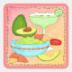 ¡Disfruten sus margaritas! Una margarita, aguacate, pimienta, guacamole y chips crean un diseño divertido y caprichoso. Los colores de fondo son una combinación de corales y de texturas coralinas/amarillas en un fondo de coral melocotón. Otros colores son el verde, el verde limón, el rojo y el azul turquesa. Una gruesa línea de curvas serpentinas negra esboza el arte. Este diseño es arte original de Phyllis Dobbs y se coordina con otros productos de esta tienda.