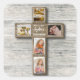 Moderno ilustracion de la Primera Sagrada Comunión con una cruz de madera con imágenes afines a la comunión en un fondo rústico. Cambiar fácilmente las 2 fotos de muestra del comunicante con sus propias imágenes para personalizar el producto.