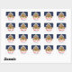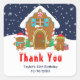 Este pegatina de agradecimiento es lindo y festivo y cuenta con una casa de pan de jengibre adornada con dulces rojos y verdes. Al lado hay adorables hombres de jengibre con regalos, vestidos con sombreros de Santa y una bufanda. En el fondo hay un cielo azul marino de invierno con elegantes copos de nieve cayendo. El texto combina fuentes decorativas y sans serif para un estilo elegante y moderno. Esto es perfecto para una fiesta de cumpleaños temática de Navidades.