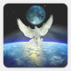Pegatina Cuadrada La paloma de la paz sobre el planeta tierra
