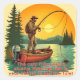 Sumérjase en la tranquilidad mientras disfruta del atardecer y de un resplandor dorado sobre un lago tranquilo. Este ilustracion vibrante captura la esencia de la pesca, donde la tranquilidad de la naturaleza se encuentra con la emoción de la pesca. Con las suaves olas de agua y los árboles de silueta que rodean la escena, es un perfecto recordatorio de las alegrías encontradas en el gran exterior. Únete al pescador en su búsqueda de pescado y experimenta la belleza de la soledad en el abrazo de la naturaleza.