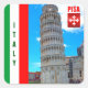 La Torre Inclinada de Pisa es una de las estructuras más famosas del mundo, un importante hito y verdadero símbolo de Italia, por lo que se presenta aquí junto a la bandera nacional italiana: verde, blanco y rojo y la Cruz Pisana, el escudo de armas de Pisa.