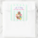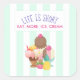 Pegatinas con una cita graciosa con el ilustracion de un helado de 3 cucharadas con rociadas coloridas. Un cono de helado con cucharas de chocolate, fresa y vainilla. Un bol de helado neopolitano con una cereza encima. Fresas y una piña se sientan al lado de las cuencas. Patrón de rayas blancas y verdes en el fondo.