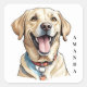 Pegatina Cuadrada Labrador amarillo sonriente con collar Naranja