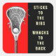 Pegatinas de regalo de Lacrosse, favores de partido o sellos para sobres con diseño de palo y bola y cita graciosa.