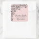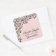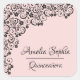 Pegatina Cuadrada Lacy Elegante Quinceañera Rubor rosa y negro