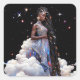 Pegatina Cuadrada Lady In Clouds African American Art