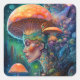 Pegatina Cuadrada Lady Y Mushrooms Surreal Fantasy Art