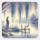 Pegatina Cuadrada Lago de Fantasía Serene con Willow y Heron