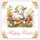 Pegatina Cuadrada Lamb, Flower Crown & Wooden Gate Happy Easter