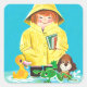 Artista: Jack Weaver | Chica con puestos de impermeable en charcos con rana, perro y pato