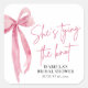 El lazo rosa sonrosado: Ella se está casando Regalo de ducha nupcial Clásico adhesivo redondo es una deliciosa adición a cualquier celebración de ducha nupcial. Con su elegante diseño de lazo rosa sonrosado, este adhesivo añade un toque de sofisticación y encanto a los favores, sobres o decoraciones. Ya sea utilizado para sellar sobres, adornar bolsas de regalo o decorar favores de la fiesta, añade un toque personalizado y elegante al evento. Hecho de materiales de alta calidad, este adhesivo es duradero y fácil de aplicar, lo que lo convierte en una excelente opción para agregar un toque especial al día especial de la futura novia.