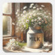 Pegatina Cuadrada Leche Anticuada Con Daisy Bouquet