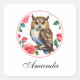 Pegatina Cuadrada Lechuza acuarela decorativa con Rosas
