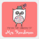 Pegatina Cuadrada Lechuza blanca con Gorra. Libros cuadrados