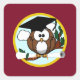 Pegatina Cuadrada Lechuza graduada con gorro y diploma - rojo y oro