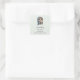 Pegatinas de negocios con un ilustracion kawaii de un búho de ojos grandes en una bata de invierno y una bufanda sosteniendo un café caliente.