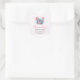 Pegatinas de negocios con la imagen de un par de búhos enamorados sentados juntos en una rama de árbol. Rodeado de flores azules, verdes y rosas.