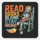 Pegatina Cuadrada Leer Libros Sé Amable Quédese Raro Esqueleto