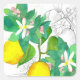 Pegatina Cuadrada Lemon Citrus Fruit Flowers Botanical Drawing