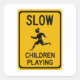 Pegatina Cuadrada Lento - Niños jugando, Signo de advertencia de trá