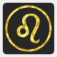 Pegatina Cuadrada Leo Sun Rótulo Gold Black Circle Hammered Gold Loo