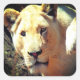 Este pegatina tiene una foto de una leona.