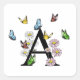 Pegatina Cuadrada Letra A Monograma de Mariposa Floral Inicial