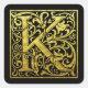 Pegatina Cuadrada Letra K primera letra Faux Gold negro