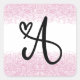 Pegatina Cuadrada Letra monograma A con purpurina rosa cepillado
