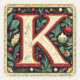 Pegatina Cuadrada Letra roja K de crema y Navidades con vegetación