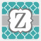 Pegatina Cuadrada Letra verde azulada azul monograma Z quatrefoil