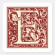 Pegatina Cuadrada Letra William Morris E Monograma Rojo inicial
