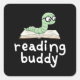 Pegatina Cuadrada Leyendo librero Buddy Cute con libro