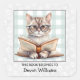 Encanta tu pequeño lector con este juego de planchas. El diseño incluye un gato lindo con anteojos y un libro abierto. Personalice como desee.