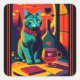Pegatina Cuadrada Libros De Gatos Y Vino Al Azar