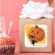 Un chico con la cabeza de una gran jota de linterna, lleno de travesuras y espíritu de Halloween. Por Paxdomino