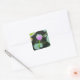 El elegante florecimiento de nenúfares rosa brillante se distingue del agua oscura y del verde profundo del baldaquín flotando en este lago. Esta foto floral añade un elemento de belleza y sofisticación a este pegatina cuadrado.