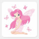 Pegatina Cuadrada Linda Hada Rosa y Mariposas Mágicas