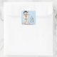 El lindo muñeco de nieve en esta pegatina de navidad de personalizable se ve muy listo con su bufanda rayada y su gorra negro. El muñeco de nieve feliz tiene una sonrisa en su rostro mientras mira hacia sus Navidades stripy sembrando que está cuidadosamente colgado en una rama de árbol que se pega de la gruesa alfombra de nieve, está sonriendo porque espera que santa llene sus medias. Esta gran pegatina de Navidad se verá muy bien en los regalos de los navidades. El texto puede ser personalizado y usted puede personalizar esta pegatina navideña con su propio texto. El ilustracion original de snowman está pintado en color agua.