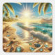 Pegatina Cuadrada Línea de costa mágica con olas azules y vidrio mar