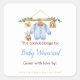 Pegatina de baby shower rústica con una adorable ropa de bebé tendida. Perfecta para una baby shower de otoño. Las palabras se pueden cambiar para adaptarse a tus propios detalles o requisitos.