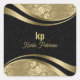 Pegatina Cuadrada Líneas dinámicas de Damasco negro de oro para la c