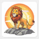 Lion standing on a rock with the sun in the background, (Panthera leo)