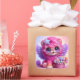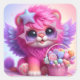 Pegatina Cuadrada Lionesa con alas y canasta de caramelos