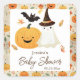Pegatina Cuadrada Little Boo Halloween Pattern Baby Shower