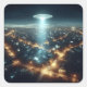 un objeto volador no identificado sobrevolando amenazantemente un barrio tranquilo. Su presencia en el otro mundo contrasta con la serenidad del entorno, lo que evoca una sensación de asombro e incomodidad a medida que lo extraordinario se une a lo mundano.